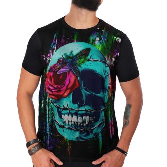 Camiseta Skulls Wired Rose and Moth